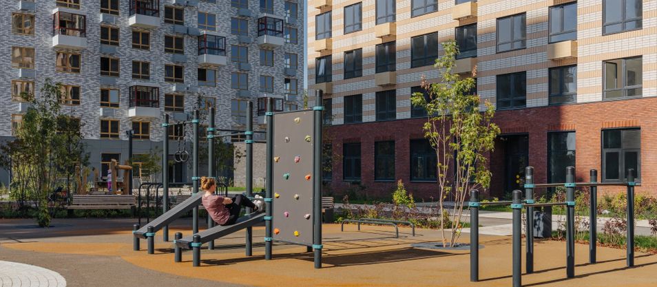 На территории жилого квартала благоустроят свободный от машин двор, оборудуют детские площадки и зоны отдыха.