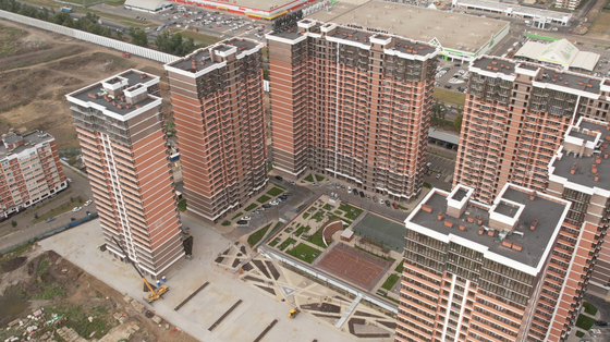 Первое, что бросается в глаза при взгляде на комплекс, – это большая зеленая зона вокруг домов. Воздух здесь чистый, а экология способствует возможности комфортной жизни с детьми. Высотные здания выложены из кирпича и сделаны в коричневых и бежевых тонах. Подъездные дороги и аллеи подсвечены яркими фонарями и наземными светильниками. Внутри двора высажено много деревьев, кустарников и цветов. Любители спорта оценят наличие площадок для активных игр: баскетбольной и футбольной. Для детей оборудована отдельная зона с мягким безопасным покрытием и большим количеством разных качелей, каруселей и горок. Также для жильцов дома установлен экран для просмотра фильмов на свежем воздухе.