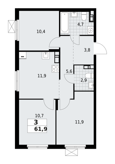 Продажа 3-комнатной квартиры 61,9 м², 8/9 этаж