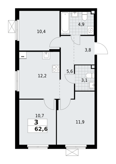 Продажа 3-комнатной квартиры 62,6 м², 2/9 этаж