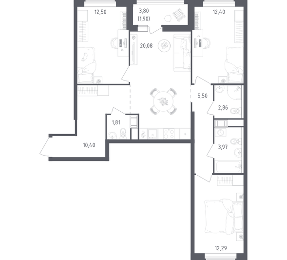 Продажа 3-комнатной квартиры 83,7 м², 12/18 этаж