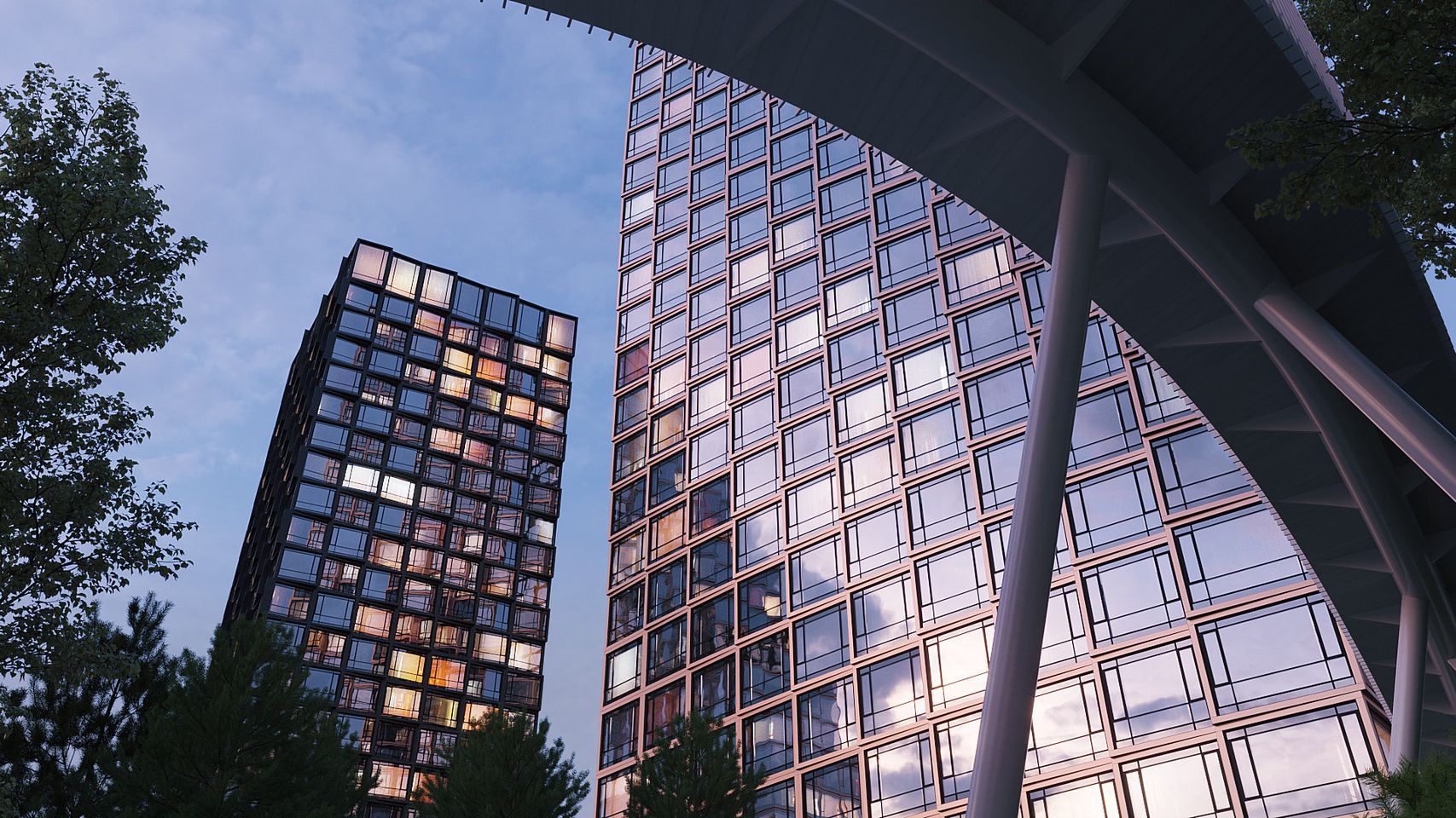 В рамках первого этапа будет возведено три корпуса высотой до 32 этажей. В домах спроектировано 646 квартир различных планировок, а также помещения коммерческого назначения. Помимо этого, в корпусе 2 расположится зона с фитнес-студией площадью около 680 кв. метров. Для владельцев автомобилей здесь появится подземная парковка на 295 машино-мест.