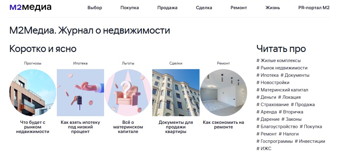 М2Медиа. Многие материалы в нашем журнале для клиентов актуальны и для риелторов — например, как подготовить документы на земельный участок или защититься от рисков при продаже. Журнал выпускает новости, разборы, чек-листы и обучающие статьи, разделённые по категориям.