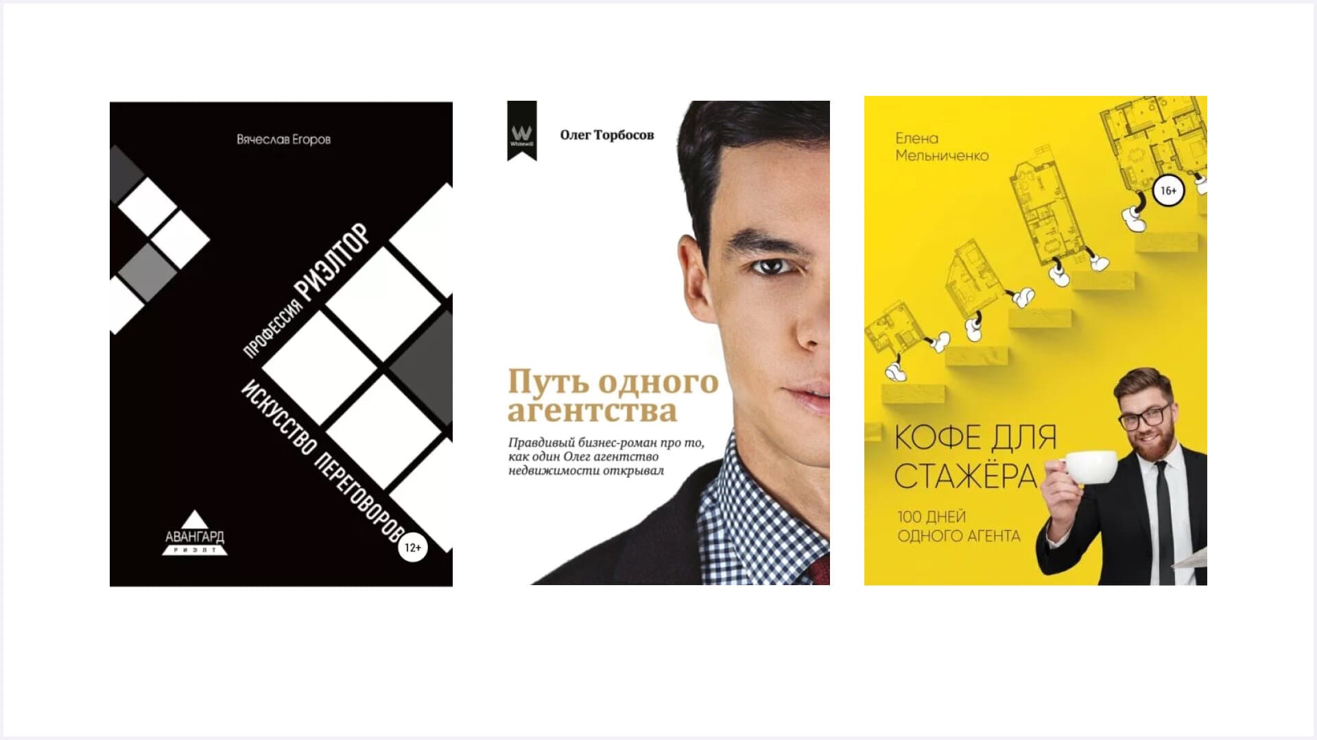 Елена Мельниченко «Кофе для стажёра. Сто дней одного агента». Эта книга лёгким языком и с юмором рассказывает историю начинающего риелтора, который впервые устроился работать в агентство по продаже недвижимости. Каждый день герой сталкивается с новым аспектом работы — и делает для себя какие-то выводы. Книга подойдёт и новичкам, и тем, кто уже работал риелтором и хочет открыть для себя тонкости профессии.