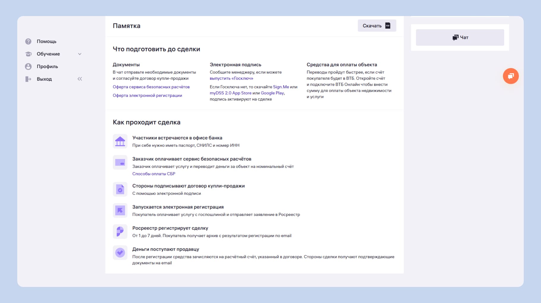 Когда вы оформите сделку в личном кабинете, мы пришлём памятку с инструкцией по выпуску подписи. Если возникнут вопросы — можете задать их персональному менеджеру.