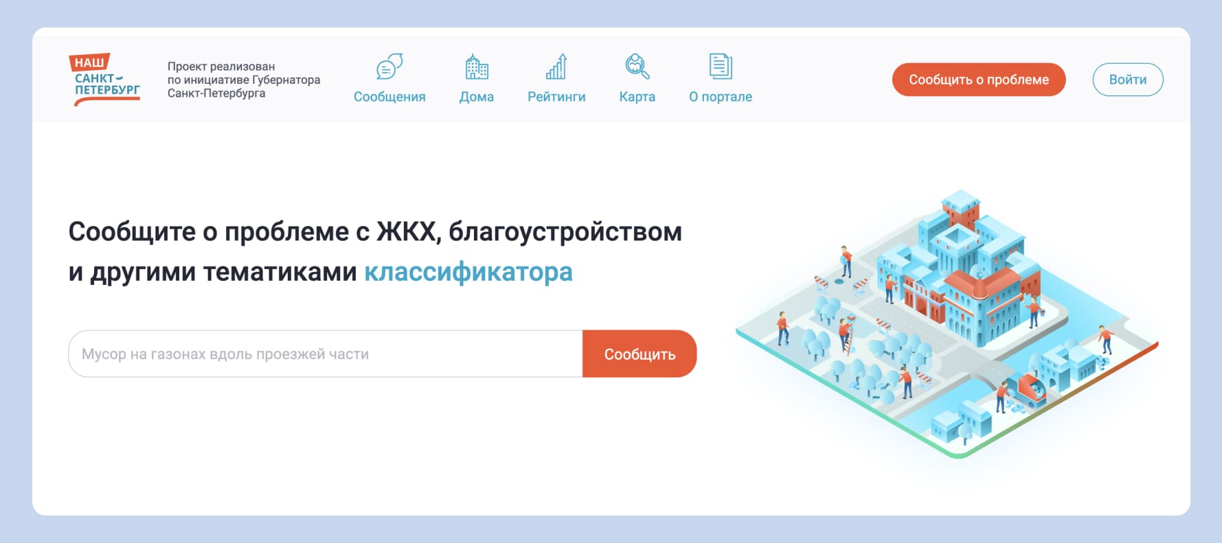 В некоторых городах есть специальные сервисы и горячие линии — туда тоже можно сообщить о проблеме. Например, в Москве это сервис «Наш город», в СПб — «Наш Санкт-Петербург».