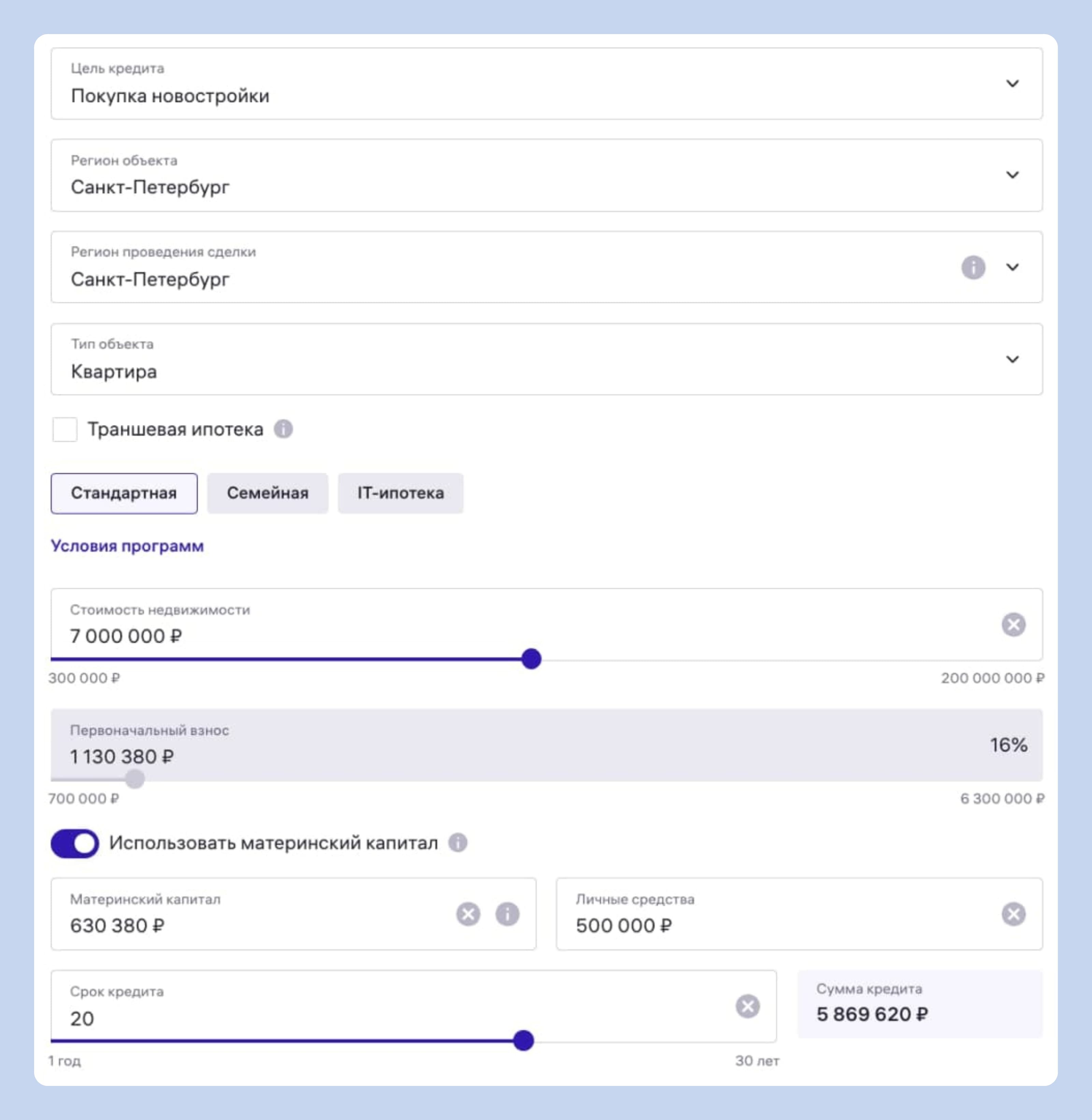 Шаг 2. Рассчитайте ипотеку и подайте заявку. Воспользуйтесь ипотечным калькулятором М2, чтобы рассчитать условия кредита с использованием маткапитала. Меняйте срок и сумму ипотеки, стоимость и тип недвижимости — условия ипотеки в банках-партнёрах будут автоматически изменяться в зависимости от установленных критериев.