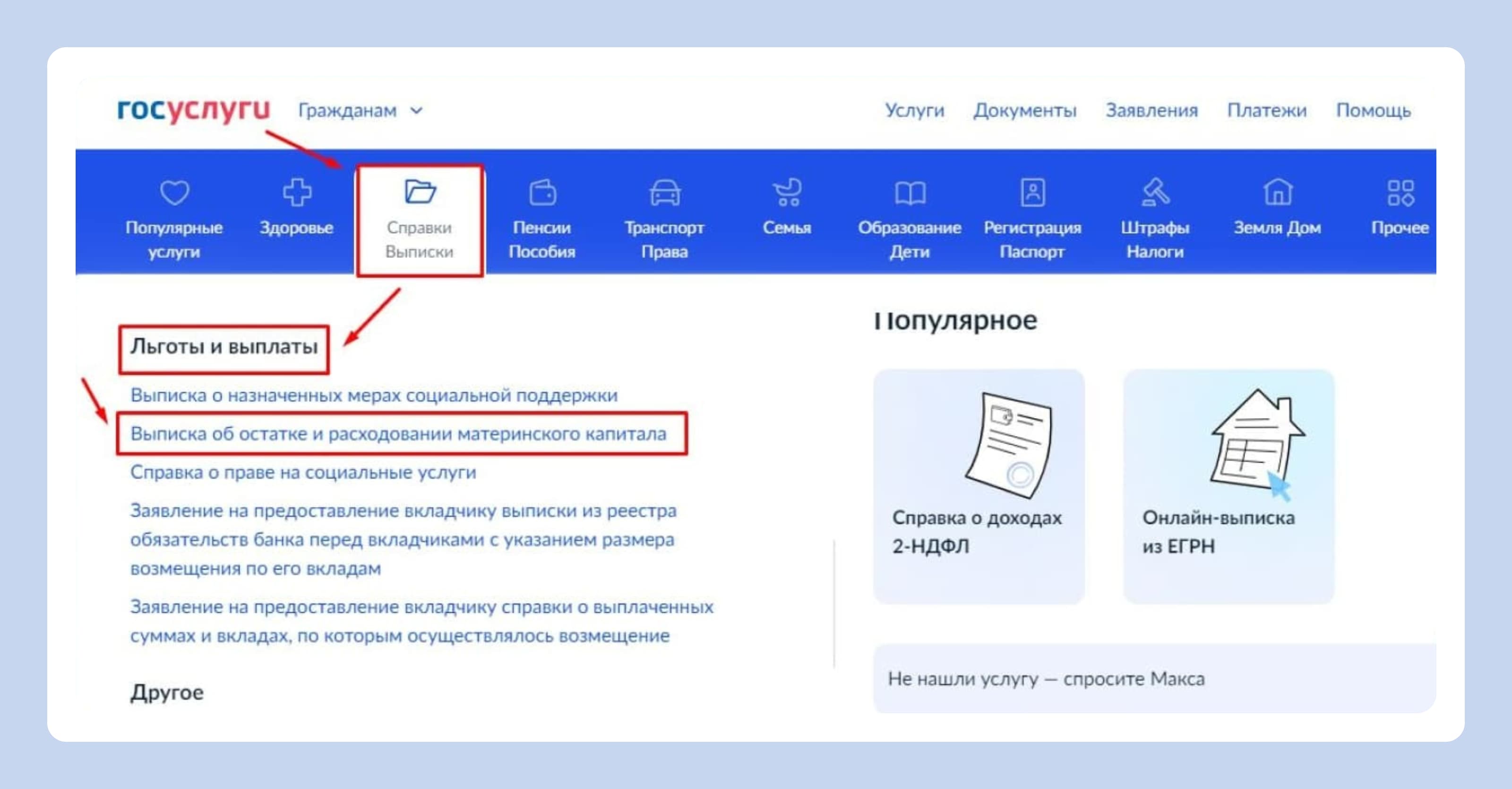 - Зайдите в «Справки и выписки».