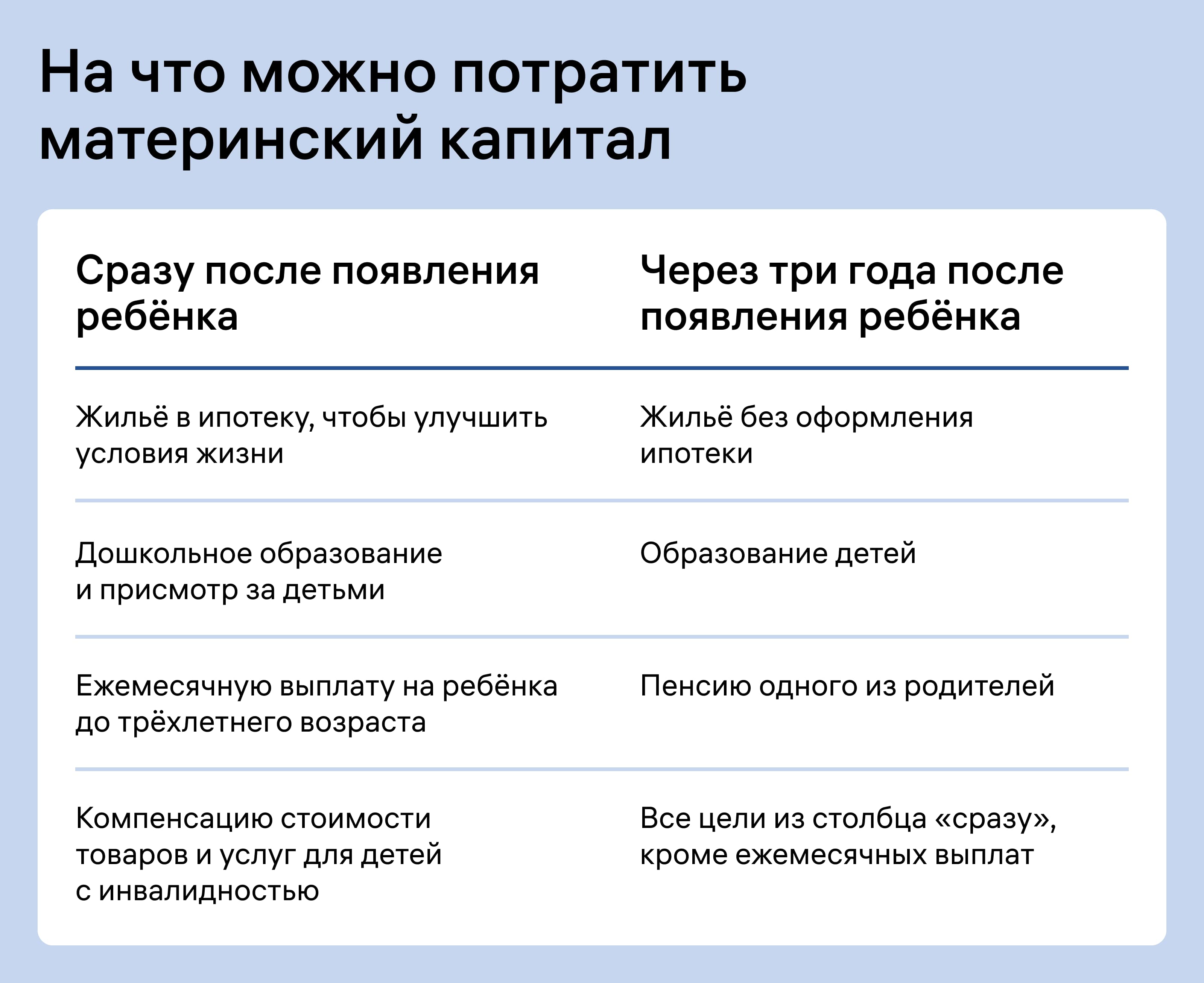 - можно воспользоваться сразу после появления ребёнка, не нужно ждать три года;
