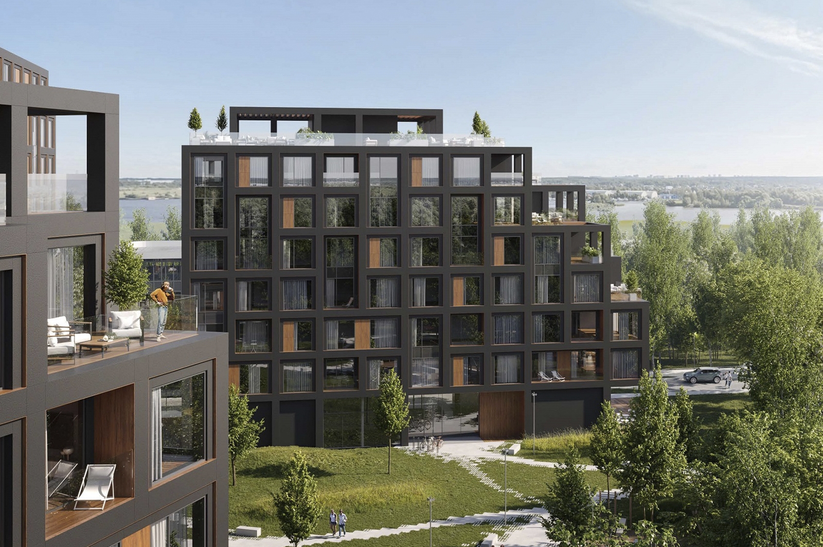 В основе концепции первых корпусов жилого района лежит идея сочетания развитой городской среды и жизни на природе. Дома будут иметь «ячеистую» структуру, их фасады облицуют керамогранитом. В объектах спроектированы защищенные от солнца террасы. Помимо жилых помещений в квартале появится подземный паркинг на 88 мест, а первые этажи домов займут объекты коммерческой инфраструктуры.