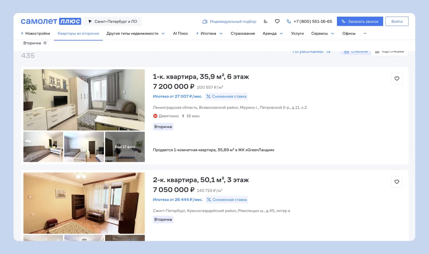 Продавать вторичное жильё могут даже застройщики. Например, у Самолета есть услуга трейд-ин: обмен старой квартиры на новую. Старое жильё девелопер продаёт от лица компании. Источник