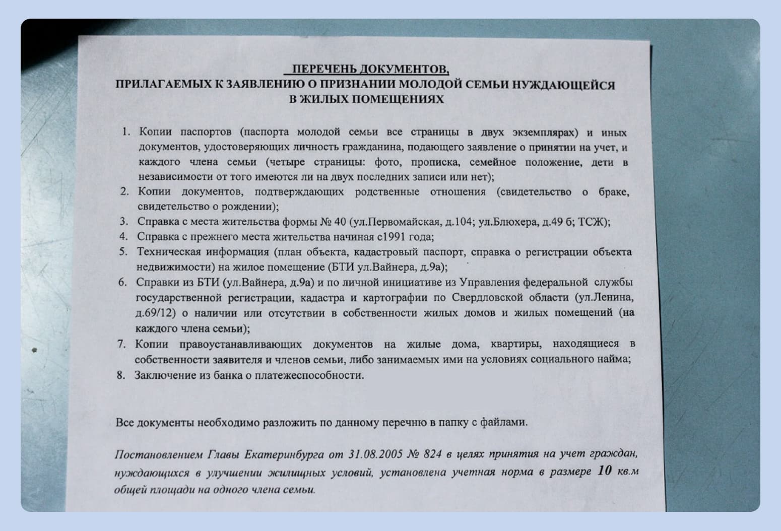 - Чтобы принять участие в программе, нужно, чтобы семью признали нуждающейся в улучшении жилищных условий. После этого необходимо собрать пакет документов и подать в администрацию города.