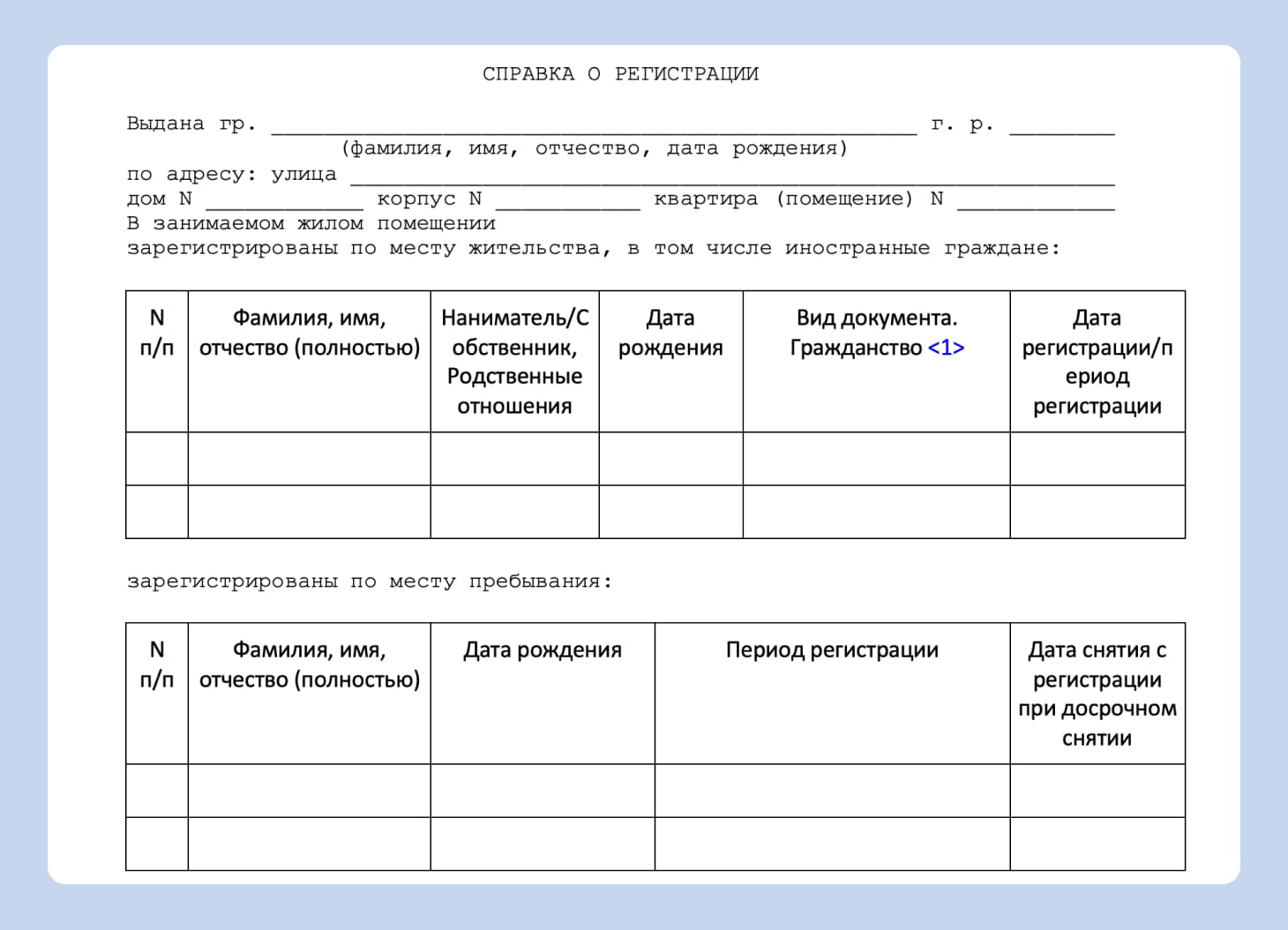Справка о регистрации может быть двух видов: