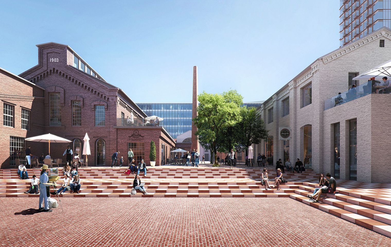 «Проект отражает идентичность исторических зданий. Территория будет вымощена клинкерным кирпичом и гранитной брусчаткой»