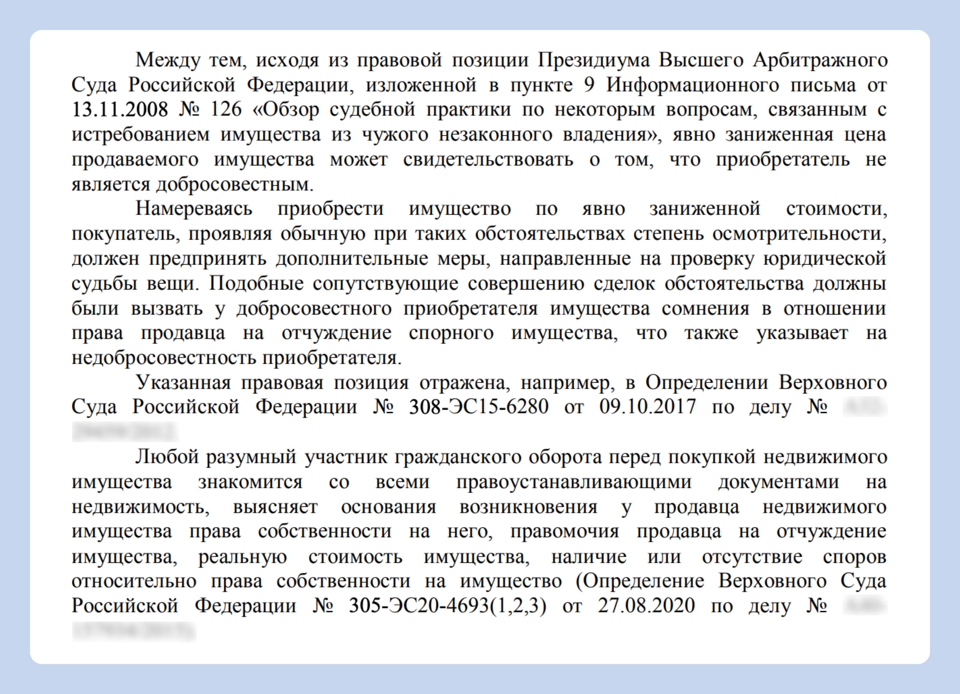 Отказ в признании добросовестности. Это тоже касается судебных разбирательств. У добросовестного приобретателя больше шансов отстоять права на квартиру или вернуть за неё деньги. Но если покупатель участвовал в схеме с занижением — добросовестным его не признают. А значит, доказать свои права будет куда сложнее.