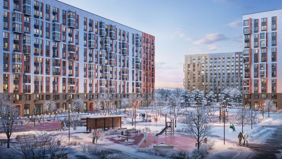 На территории комплекса будет все необходимое: 4 детских сада, 2 школы и поликлиника. На первых этажах расположены супермаркеты, пекарни и кафе. В 7 км находится торговый центр «Отрада» и гипермаркет «О’кей». Высотность 11–12 этажей обеспечивает уют без городской суеты. Фасады отделаны кирпичом и декоративными панелями в цветах, напоминающих оперение подмосковных птиц: оранжевый, черный, серый. Во дворе — зеленый сквер с арт-объектом в виде птицы и внутренний сад для общения и игр. Центральный пешеходный бульвар и современные игровые площадки создают безопасную атмосферу.