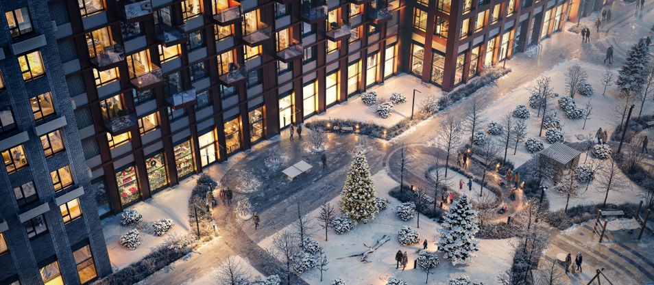 На территории проекта появится детский сад с бассейном для 250 малышей. В уютных дворах-парках есть места для отдыха, игровые и спортивные площадки. На первых этажах домов откроются магазины, кафе и другие сервисы. А для владельцев автомобилей предусмотрен подземный паркинг.