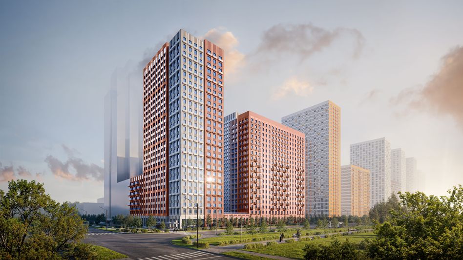 Квартал от архитектурной мастерской М.А.М. органично дополняет городской ландшафт. Разновысотные корпуса в минималистичном стиле сочетают мягкие пластичные линии и строгие геометрические формы. Цветовая гамма фасадов — контраст терракотового и молочно-серого оттенков, которые создают атмосферу тепла и уюта. На первых этажах домов — просторные и светлые лобби с дизайнерской отделкой. Здесь появятся зоны ожидания, скоростные лифты и помещение для хранения колясок и велосипедов.