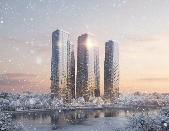 Жилой комплекс включает в себя пять башен, их спроектировали архитекторы ведущего московского бюро ADM. Каждая высотка уникальна, а футуристичные фасады меняют свою форму в зависимости от этажа.