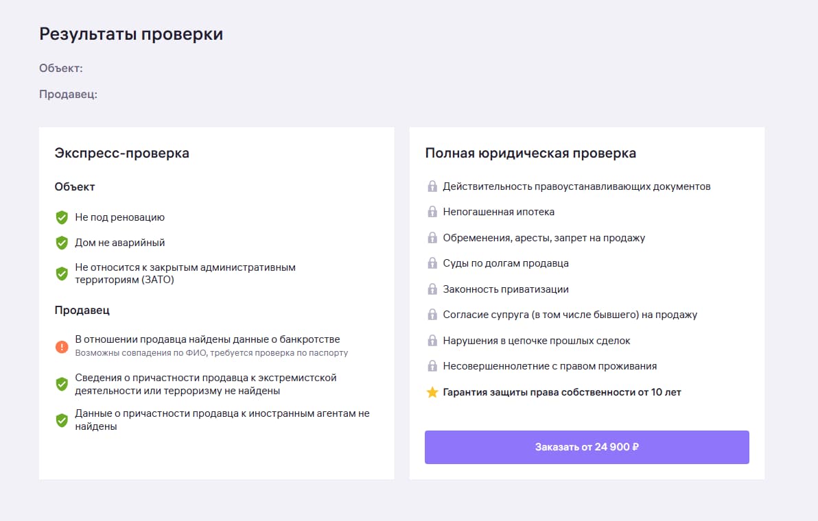 Воспользоваться бесплатной Экспресс-проверкой объекта и продавца можно по ссылке.