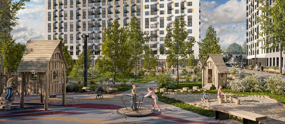В каждом дворе будет зелень, места для отдыха, детские и спортивные площадки. На первых этажах готовых домов открыта автошкола, мебельный и цветочный магазины, студия красоты, паб; по мере сдачи корпусов появится больше товаров и услуг.
